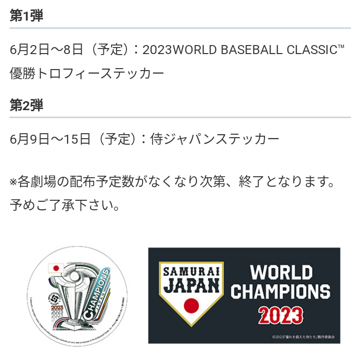 6月2日に公開する映画「憧れを超えた侍たち 世界一への記録」に来場された方に入場者限定ステッカーをプレゼントします。