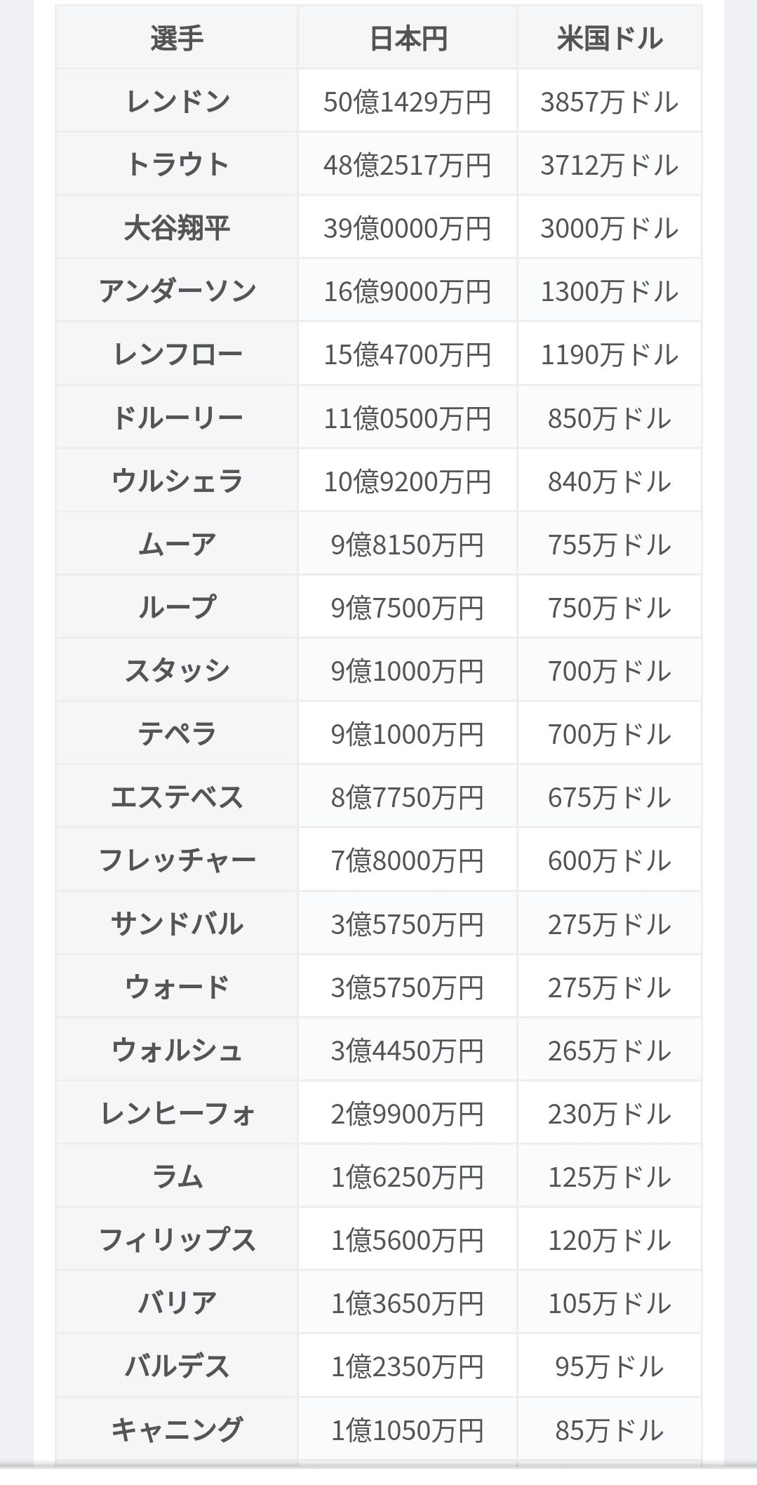レンドーン、トラウト、大谷とかいう莫大な金払ってるのに