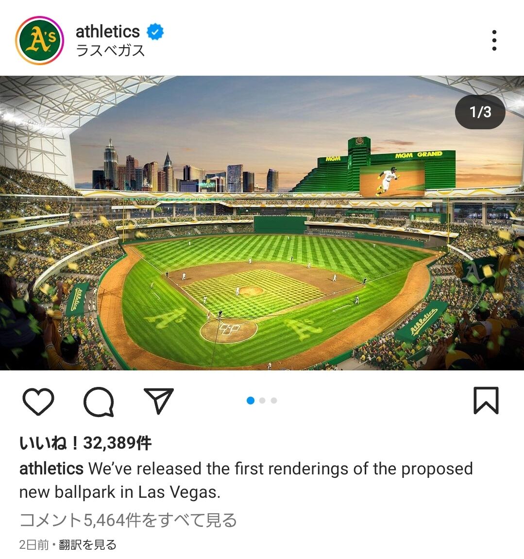・突如インスタでラスベガス移転後の新球場イラストを投稿してファンを逆撫でし大炎上(普段のコメント数は2桁)
