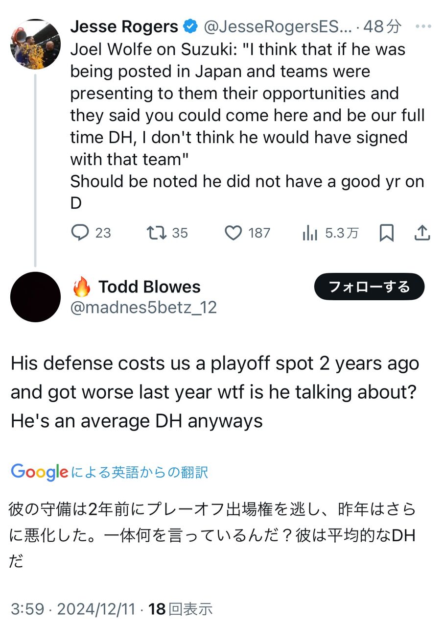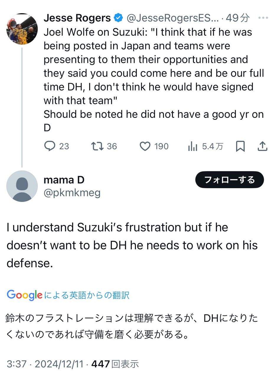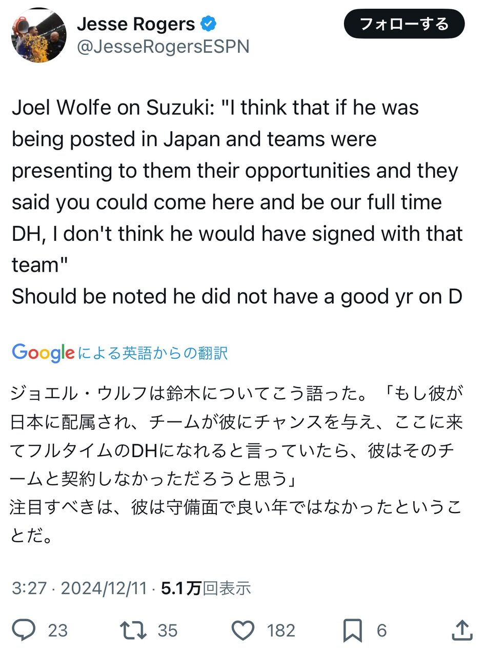 中卒並みの思考回路に英語も全く話せません、守備も壊滅的ですときたら3割30本100打点くらい打たんと割に合わないな