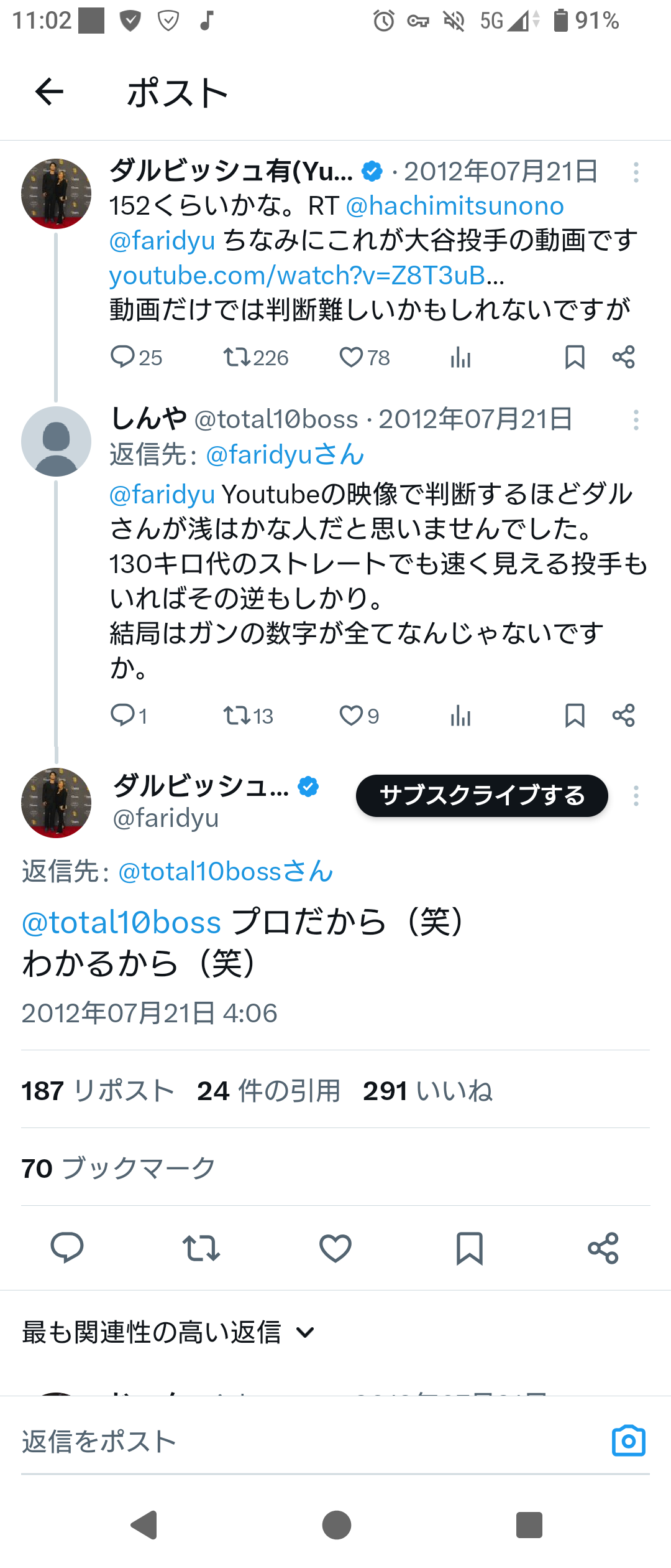お前の球速はもっと出るはずやっていう期待と、プロの球の質についての指摘やったんやと思うで。ホンマに大谷選手の才能を買っとるからこその愛のある煽りや!