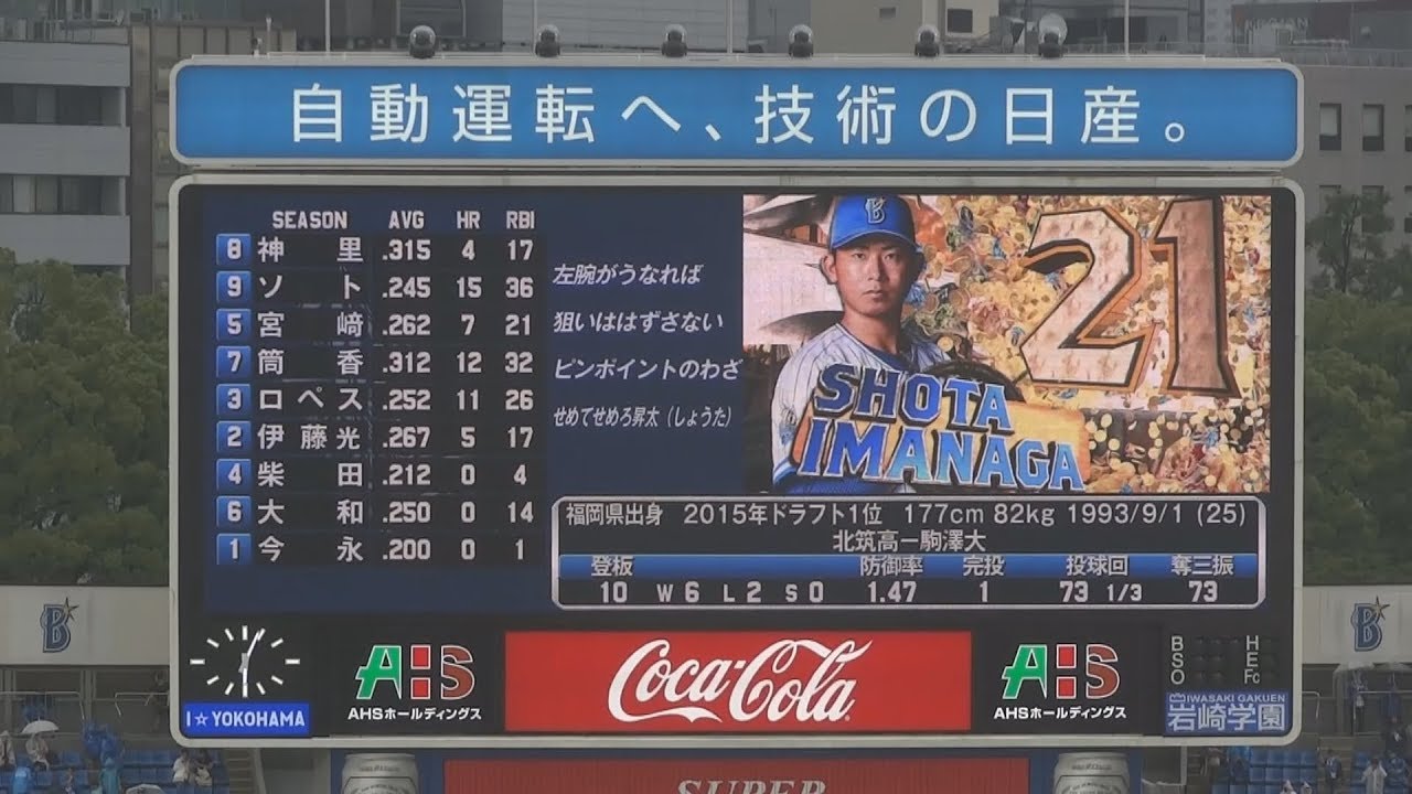 大貫ー濱口ー上茶谷ー平良ー坂本ー京山