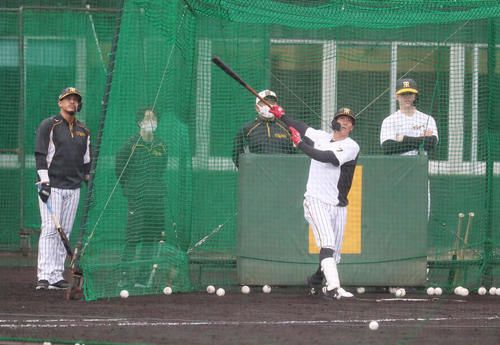 阪神・糸井嘉男外野手、この日から沖縄の練習に参加したジェリー・サンズ外野手、ジェフリー・マルテ内野手がランチ特打を行った。糸井もコロナ禍で調整遅れが懸念されていた助っ人2人も順調な仕上がりを見せた。