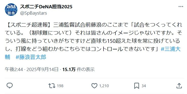 【監督時代の三浦大輔の畜生コメント打線】の続きを読む