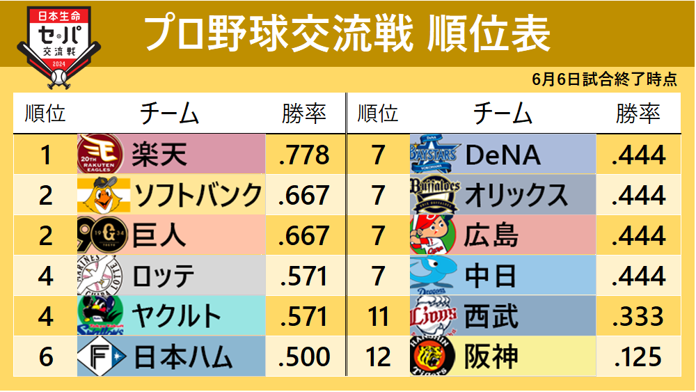 交流戦チーム防御率ランキングwwwwwwwwwwww