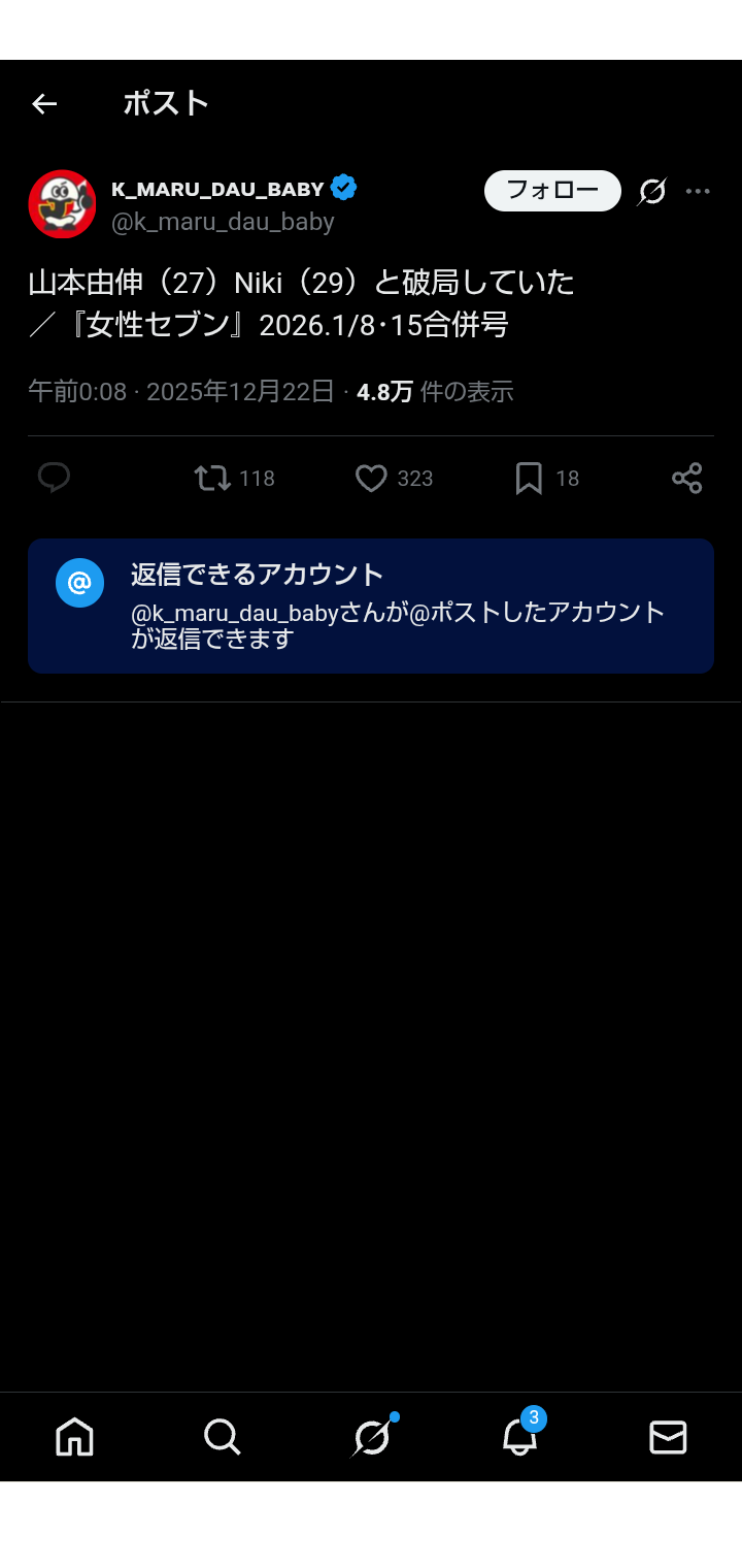 山本由伸、港区女子Nikiと破局 2025年12月27日 カテゴリ:MLB 1: Red★速報 2025/12/22(月) 08:21:15.13 ID:FVjqbrLP0 【山本由伸、港区女子Nikiと破局】の続きを読む タグ :#野球#MLB#山本由伸