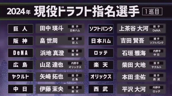 現役ドラフトの指名ルールってなかなか面白いな 2024年12月15日 カテゴリ:ドラフトnasi 1: Red★速報 2024/12/10(火) 15:30:53.27 ID:xBLT49wd0 まず12球団が「この選手出しますよ」ってチラ見せした上でどの選手が一番人気になるか仮投票 仮投票で人気になった放出選手の球団から本指名、早いもの勝ち 結構上手く出来てて感心した 【現役ドラフトの指名ルールってなかなか面白いな】の続きを読む タグ :#野球#現役ドラフト